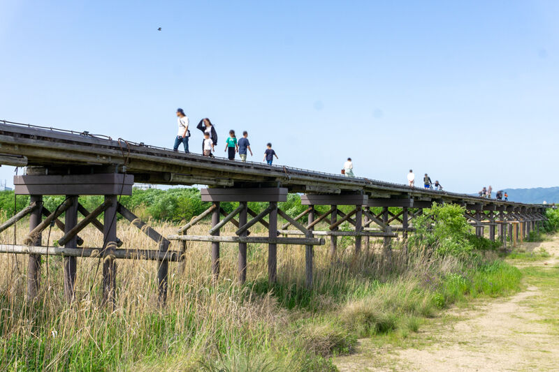 5連休の2日目を迎えた「流れ橋(上津屋橋)」の様子です。