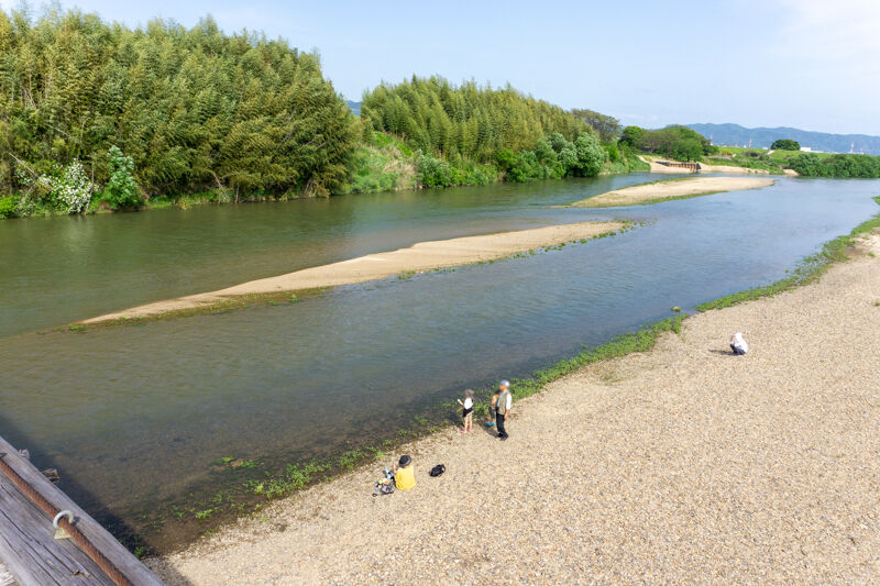 流れ橋といえば、増水時に橋桁が浮いて流れる構造の木橋。時代劇の撮影にも使われるなど、八幡市の代表的な観光スポットとして知られています。