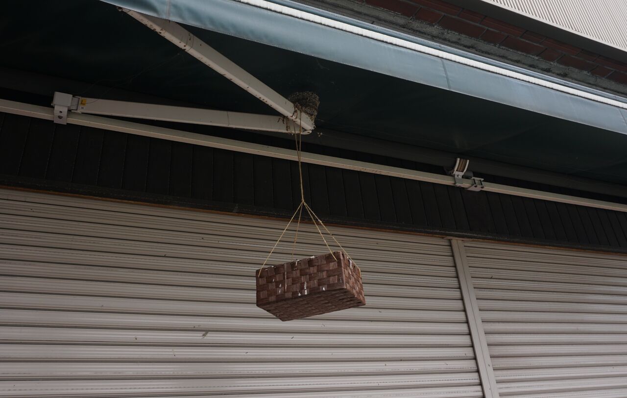 ツバメの巣の下には、糞が落ちないようにする心遣いも。