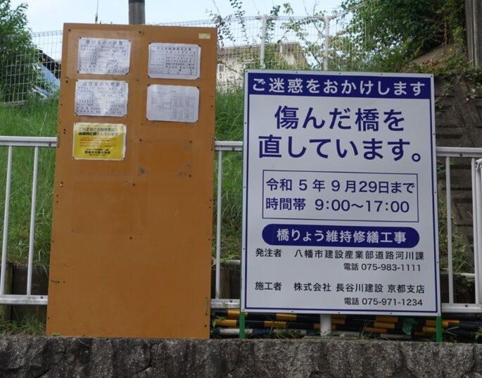 お知らせによると、この工事は傷んだ橋梁を維持・修繕するためのもので、工事期間は2023年9月29日まで。時間帯は9時~17時とのこと。