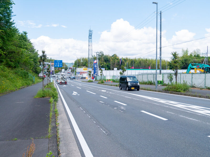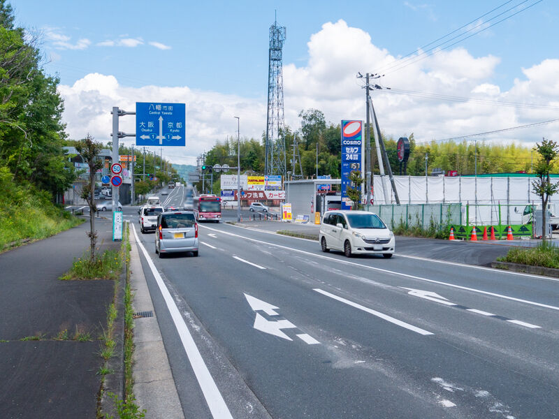 八幡洞ヶ峠交差点の右折レーンが延伸されてる。山手幹線側 2023年05月15日 八幡洞ヶ峠交差点の右折レーンが延伸されています。地図ではここ↓山手幹線から国道1号線に出る時の右折レーンです。松井山手側から見ていきたいと思います。以前より手前から右折レーンが始まり、白線が引き直されているのが分かります。新たに予告の矢印も。右折レーンの長さは以前の数倍になった印象です。現地のお知らせによると、ここ数日の間に区画線を引き直す工事が行われたようです。松井山手からくずは・男山方面へ向かう車がよく通る場所ですし、渋滞緩和の効果が期待できるのではないでしょうか。◆関連リンク ※情報提供はこちら < 前の記事次の記事 > コメント コメントフォーム 名前 コメント 記事の評価 リセット リセット 顔 星 情報を記憶 コメントを投稿する
